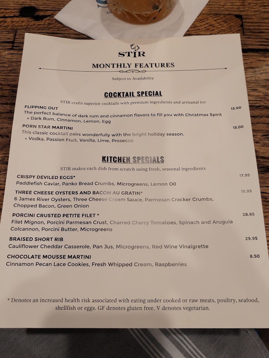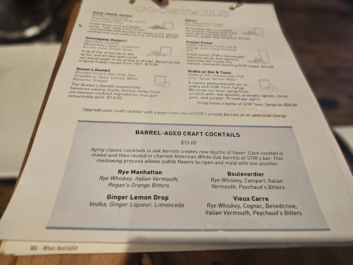 Various non-alcoholic drink options including Virgin Mojito, Virgin Bloody, and customizable mocktails.